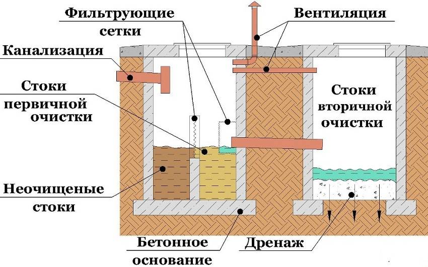 - Проход воздушных масс из одной бетонной емкости в другие осуществляется через трубы между ними. Поэтому эти трубы должны иметь достаточно большой диаметр, чтобы не забиваться.