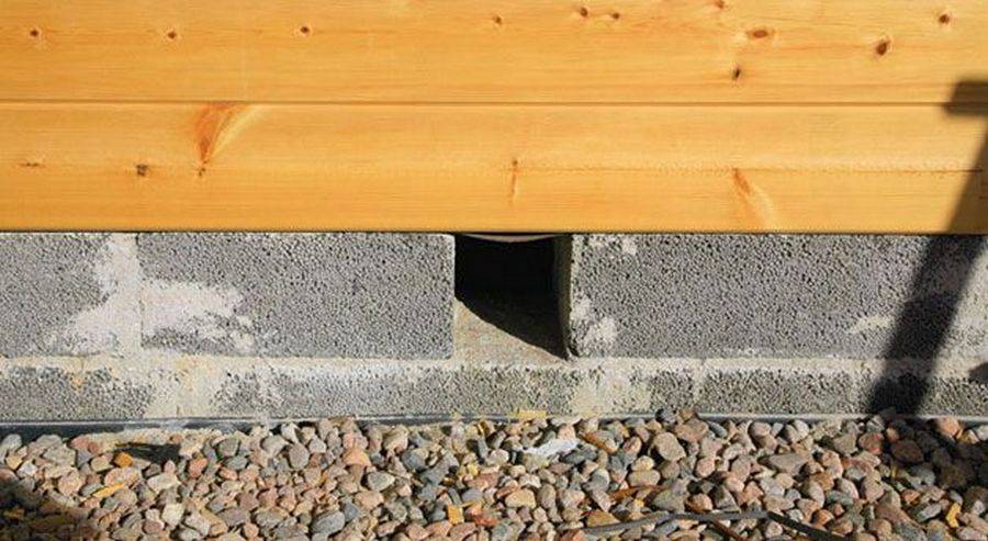 - на этапе строительства внутри фундамента организуются вентотверстия для притока-отведения воздушных масс;