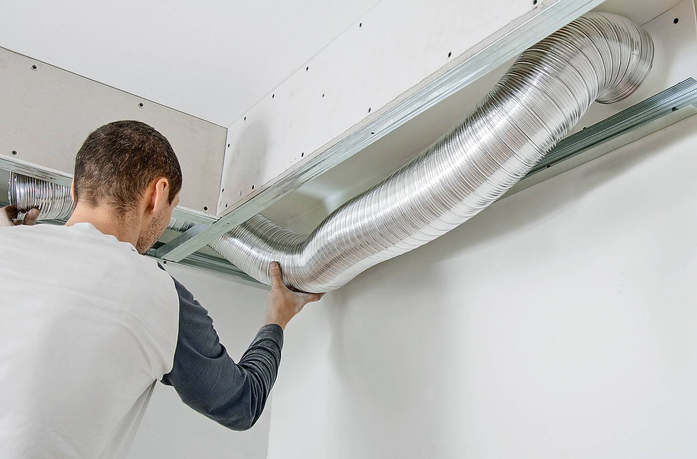 Если же в качестве системы вентиляции выбрана принудительная или искусственная вытяжка, то важно учесть, что работы необходимо производить до того, как осуществляется установка натяжного потолка. Сначала производится расчёт и монтаж самой системы