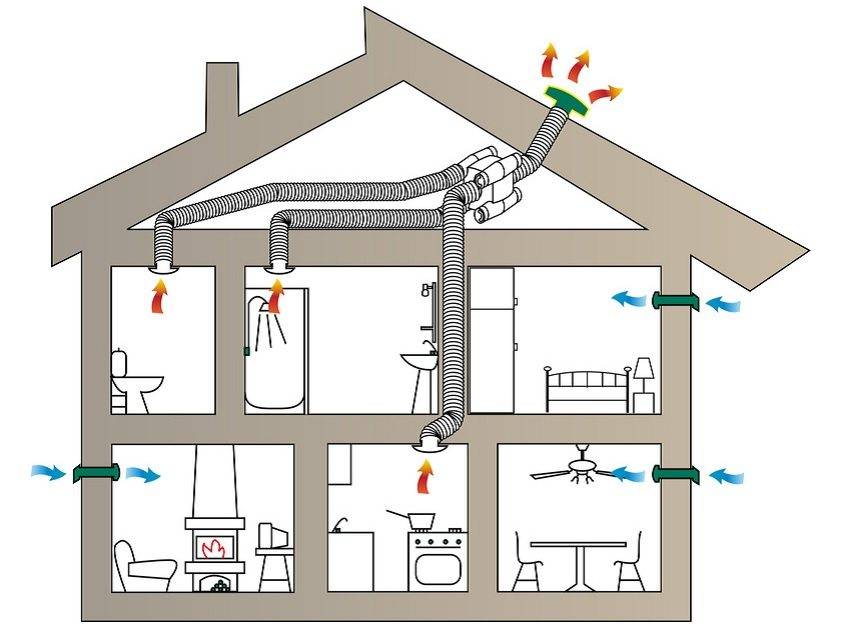 Для расчета мы использовали самый распространенный вариант организации вентиляции в коттедже: