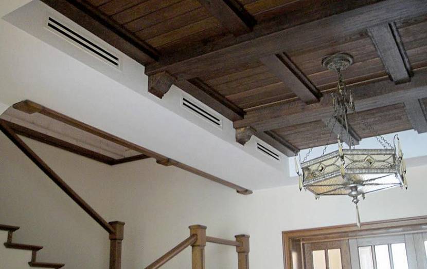 В качестве воздуховодов используют или пластиковые трубы или оцинкованные элементы. Их располагают над подвесными конструкциями и в стенах с выходом наружу над крышей или в стене.