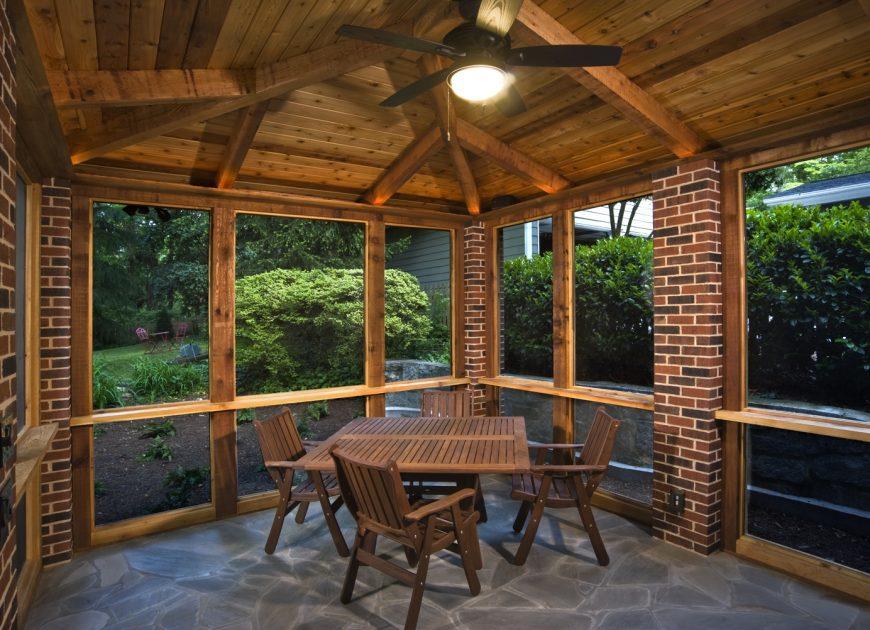Приступайте к отделке террасы или веранды только после выстраивания каркаса, зашивки стен, настила кровли и остекления. Перед оформительными работами организуйте в пристройке освещение, отопление, систему вентиляции.
