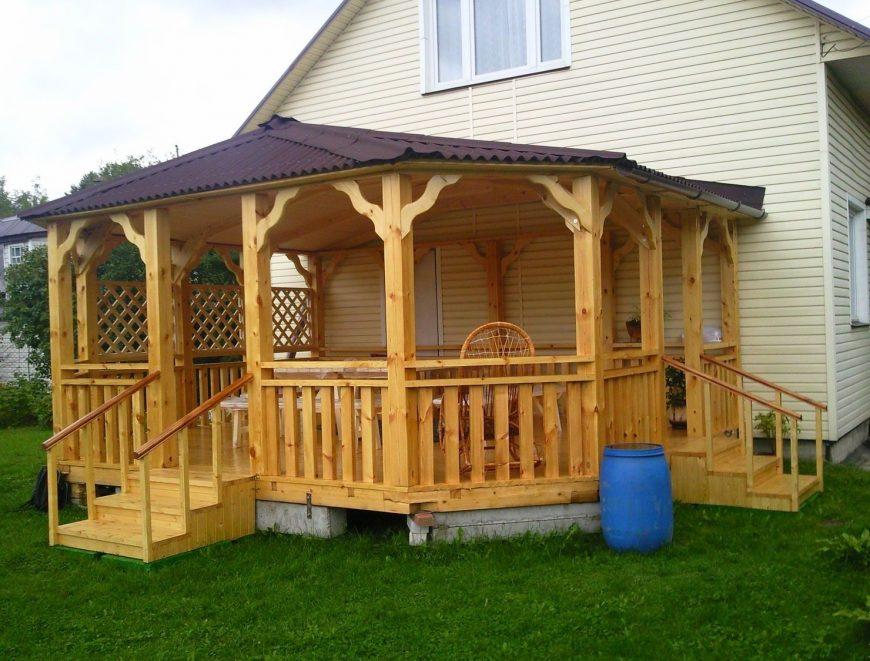 - Нередко пристраивают отдельно расположенной беседке, открытую террасу