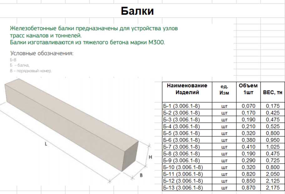 Масса и габаритные характеристики фундаментных блоков ФБС