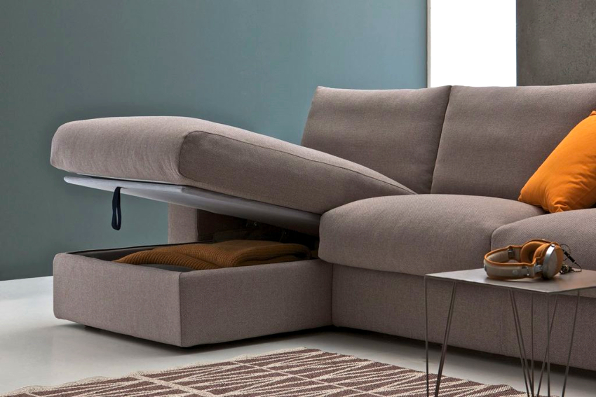 В условиях небольшой квартиры, где требуется грамотно использовать все доступное пространство, следует позаботиться о том, чтобы диван имел дополнительный отсек, в котором можно хранить постельное белье или зимнюю одежду