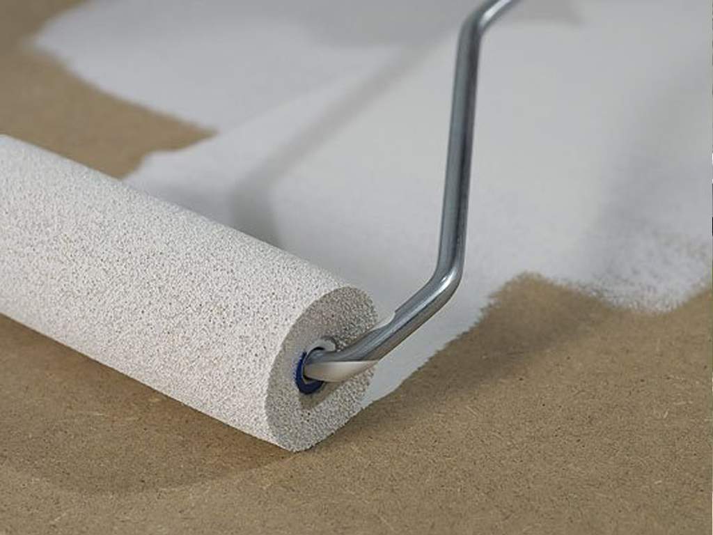 - Широкая кисть или распылитель помогают обработать напольное либо потолочное покрытие. Валик с ворсом среднего или большого размера больше подходит для абсолютно ровных поверхностей. Работой надо заниматься только в том случае, когда в окружающей среде поддерживается положительная температура.