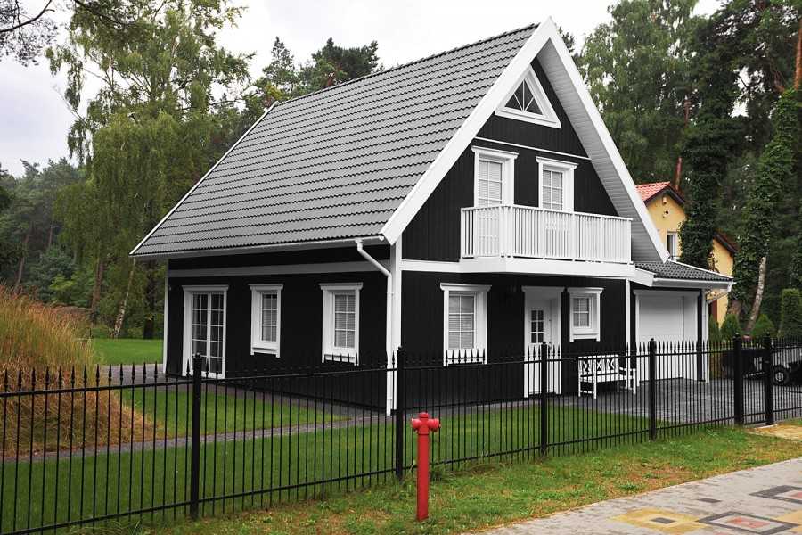 Дом с двухскатной крышей с мансардойДом с двухскатной крышей в скандинавском стиле