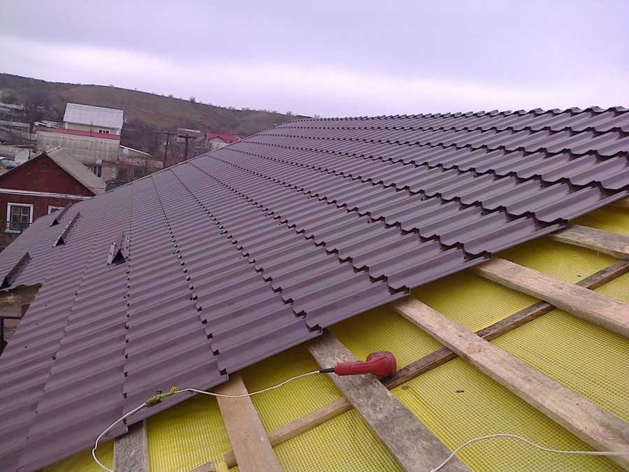 Как только с укладкой обрешётки будет закончено, можно приступать к монтажу кровельного материала. Если требуется дополнительное утепление подкровельного пространства, то допускается монтаж твёрдых утеплителей — подойдёт экструдированный пенополистирол или пенопласт, а также мягкие материалы, например, минеральная вата. Обязательным условием выполнения утепления выступает обустройство пароизоляционного и гидроизоляционного слоя.