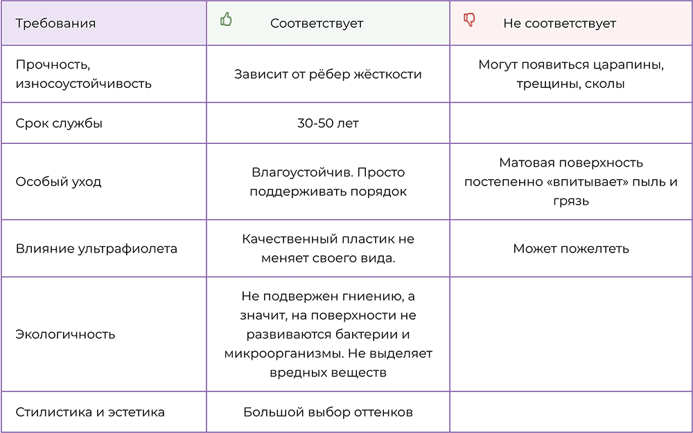 - устойчивость к влаге, солнечным лучам, перепадам температуры;