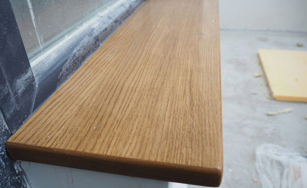 Среди всех сортов древесины наиболее подходящими для подоконных досок считаются бук, орех, дуб, ясень. Нередко применяются и менее дорогие лиственница, сосна. Изделия не только хорошо выглядят, но и обладают высокой тепло- и шумоизоляцией, экологически безопасны, долговечны. Из древесины можно делать изделия самых причудливых форм. Длина и ширина подоконника могут быть любыми.