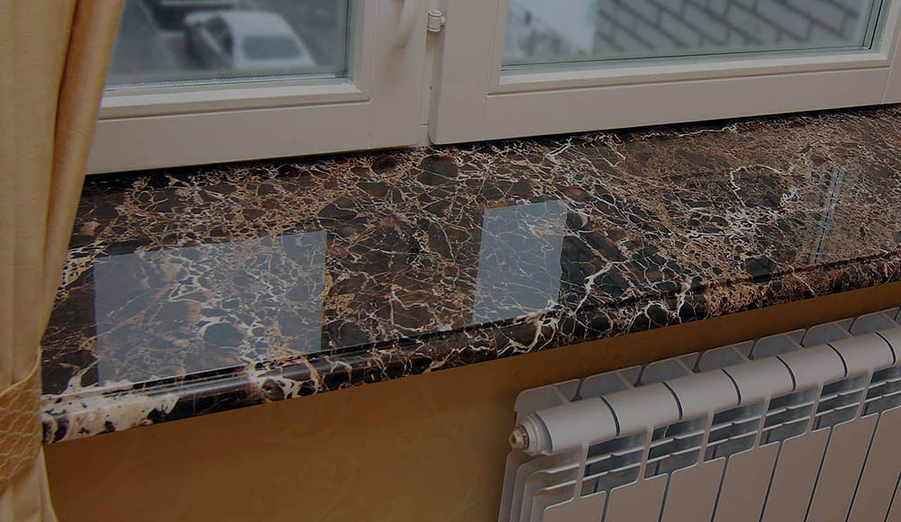 Дорогой натуральный камень сегодня научились изысканно «подделывать», получая в итоге образцы, почти не уступающие по прочности и эстетичности, но значительно более легкие и дешевые. Смотрятся каменные подоконники шикарно, позволяют создавать эксклюзивные интерьеры.