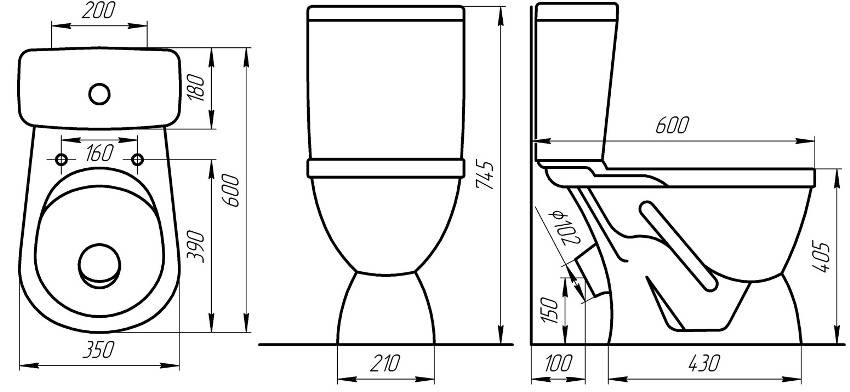 Кстати говоря, размеры унитазов строго регулируются ГОСТом. Так, например, размеры унитаза компакт выглядят следующим образом: