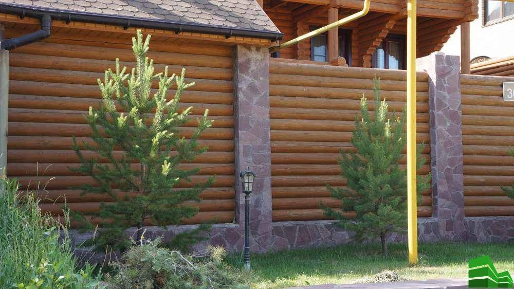 Бревенчатая. Основным элементом данной конструкции являются бревна, располагающиеся стоя или лежа. Соединяют бревна в единую конструкцию брусья со специальными выемками. Данный вид ограды из дерева является дорогим удовольствием, требующим дорогого ухода.