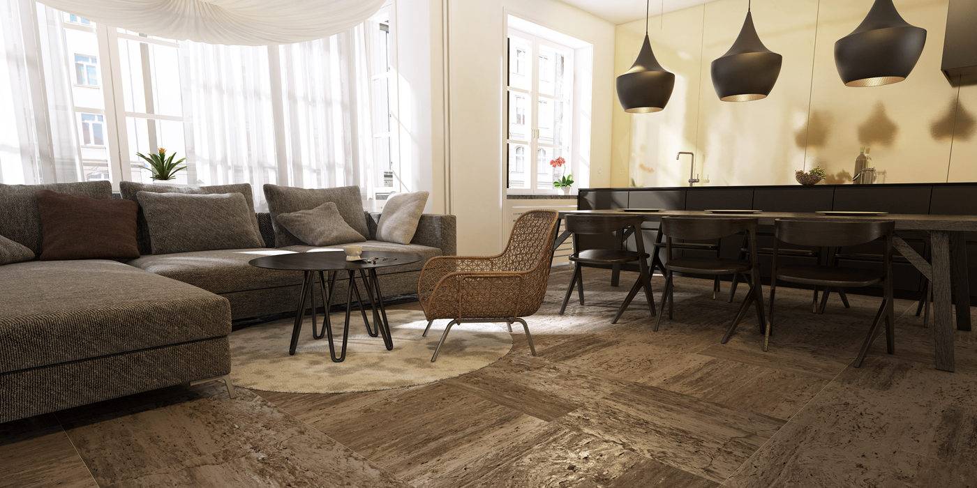 - кварц-винил хорошо дополнит классический ламинат во влажных помещениях, в результате чего возможно единое дизайнерское решение по полу квартиры;