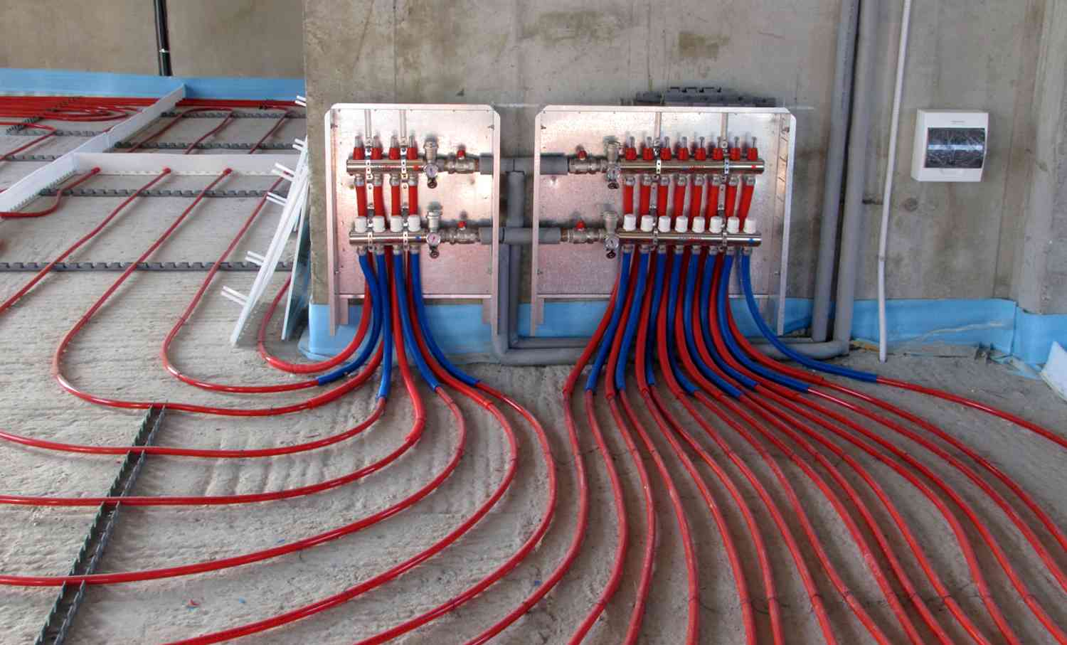 А если площадь комнаты большая, это означает что контуров будет 2-3, а то и 4. Тогда места необходимо оставить ещё больше с учетом количества числа труб.