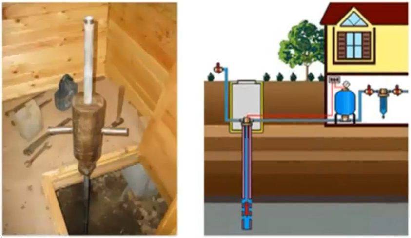 Также, тогда как вода в колодце поступает по самой шахте, в скважине для ее подачи наверх и заодно защиты стенок от разрушения используется обсадная труба или иначе колонна — пластиковая или стальная труба с наконечником-фильтром в нижней ее части.