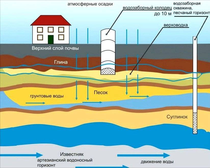 Слои, из которых скважины наполняются водой, подразделяются на три группы: