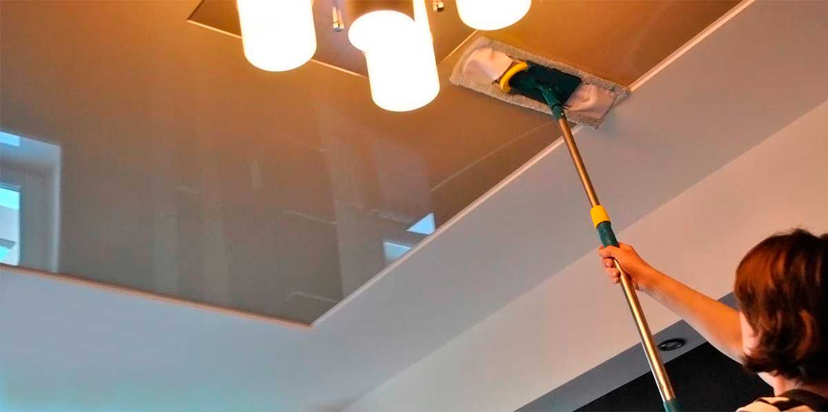 На чем основываются их рекомендации? Прежде всего на том, что натяжные потолки легко привести в порядок. Если они поливинилхлоридные, то влажную их уборку можно делать регулярно. Прекрасно отмываются теплой мыльной водичкой скопившаяся на них грязь, никотиновые и жировые налеты. Причем много сил и свободного времени эта процедура не занимает. Средства для мытья и соответствующие инструменты всегда есть в любой семье. Зато в доме будет постоянная чистота и отсутствие пыли.