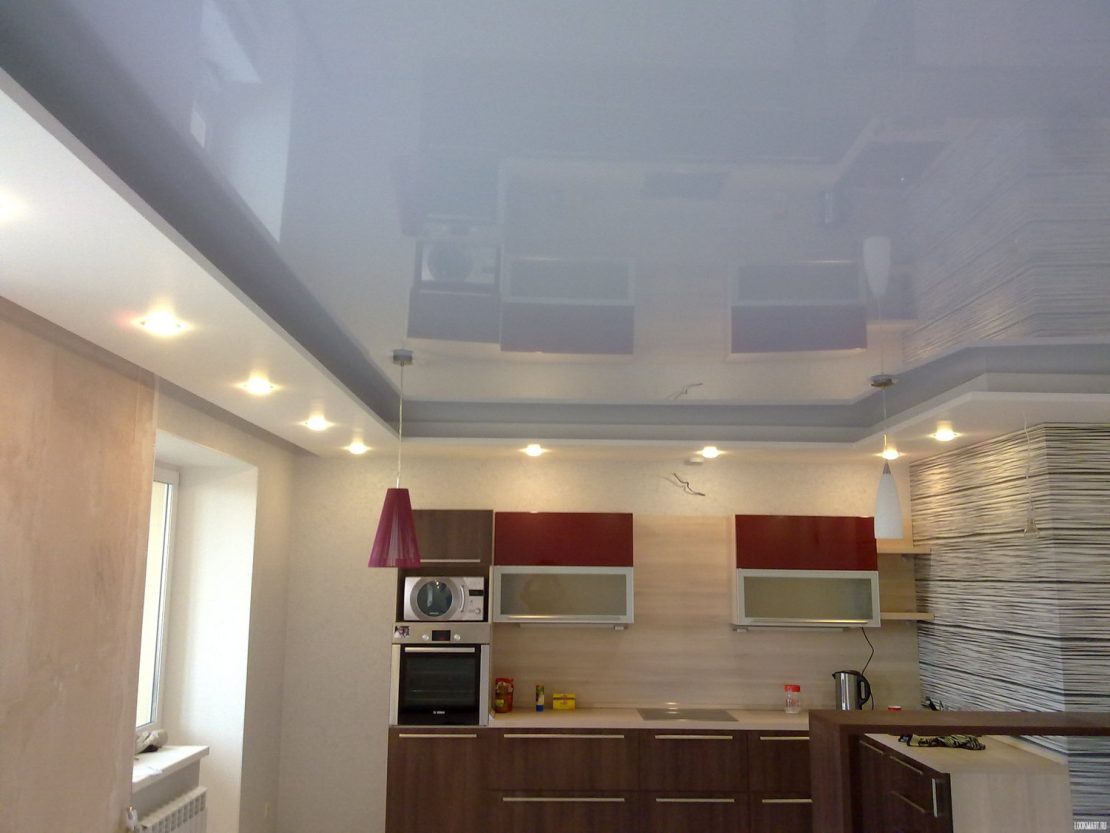 - покрытие предлагается с разной структурой. Глянцевые, матовые, полуматовые и другие виды потолков смотрятся стильно и эффектно.