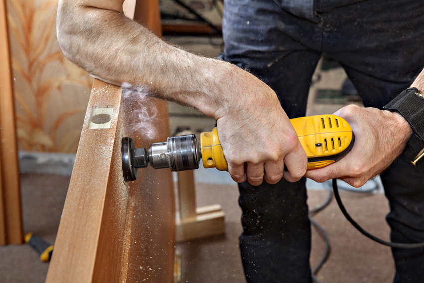 Лучше всего эти работы проводить при помощи фрезера: может возникнуть проблема при использовании других инструментов, таких как долото и стамеска. Ручной фрезер позволяет добиться ровных поверхностей с наименьшими погрешностями. Таким образом, получится сохранить эстетичный вид двери.