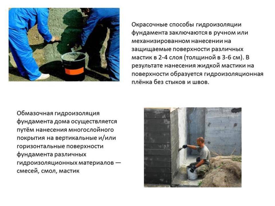 К этой группе относятся мастики и эластичные составы. Они наносятся на защищаемую поверхность слоем 2-6 мм. Обмазочная гидроизоляция применяется для обработки фундаментных оснований, плоских крыш, подвалов. Может использоваться для внутренних и наружных работ.