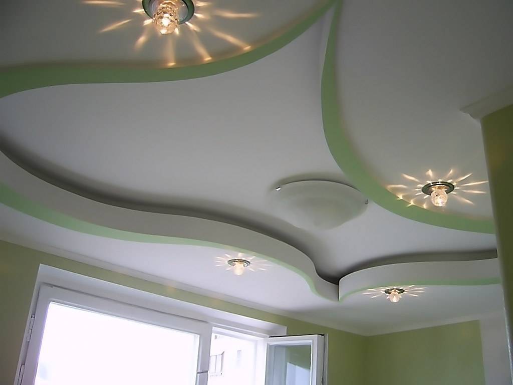 Из гипсокартона очень удобно делать различные формы, узоры и фигуры на потолке. Они могут быть круглыми, волной, угловатыми, всё зависит от идеи интерьера в целом. В общем это очень стильно и красиво.