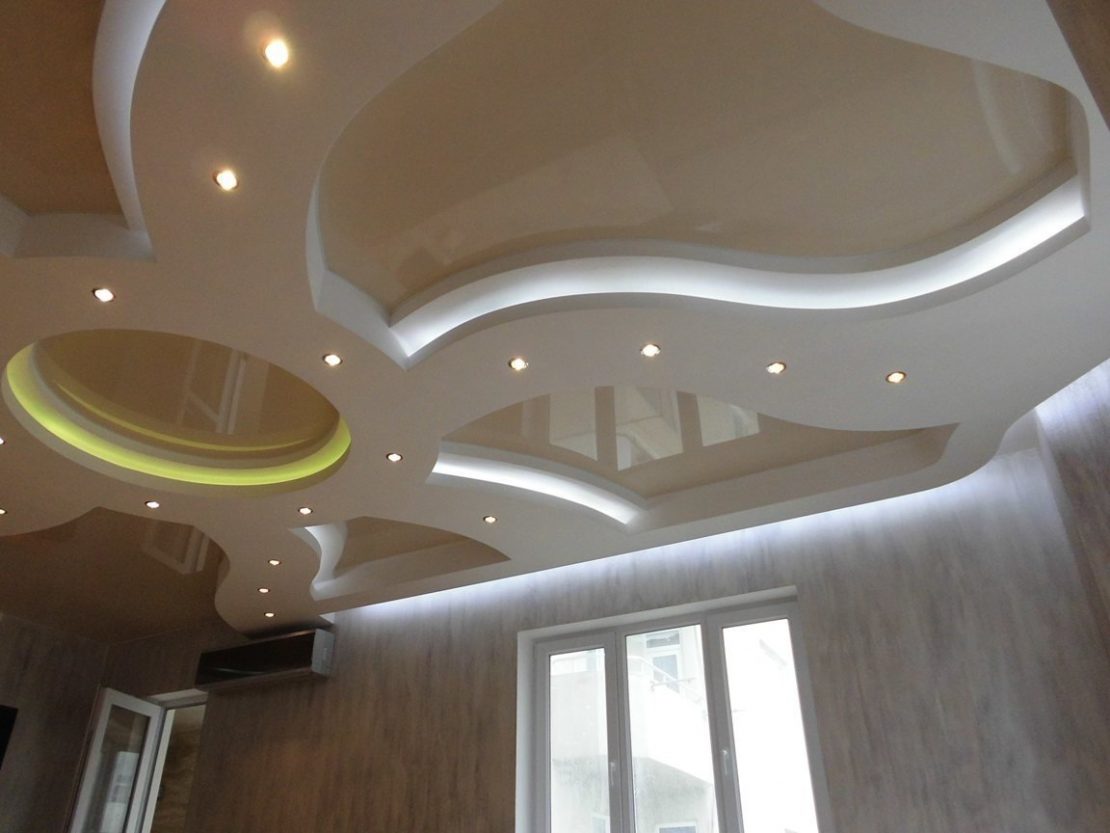 Такие виды потолков из гипсокартона в гостиной смотрятся уместней всего. Особенности многоуровневых конструкций: