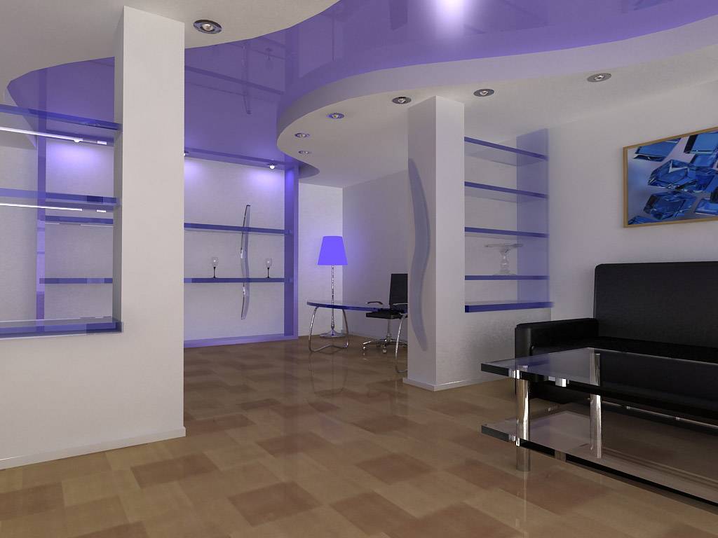 Представляет собой конструкцию, которая состоит из нескольких ступеней. Внешне напоминает натяжной потолок. Позволяет воплотить множество разных дизайнерских решений.