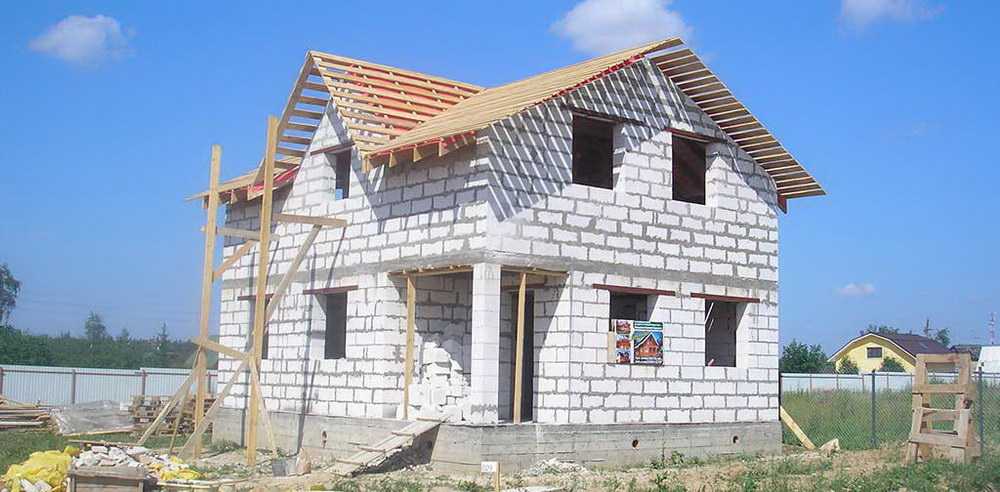 Следует заметить, что при строительстве домов из блоков высотой более одного этажа, необходимо по периметру конструкции установить армированные бетонные колонны или сделать армированную стяжку для перекрытий.