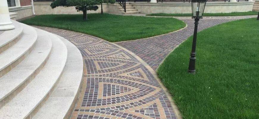 За счет небольшого размера, с помощью мозаики можно создать самые разнообразные художественные рисунки при мощении дорожек.