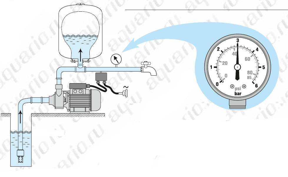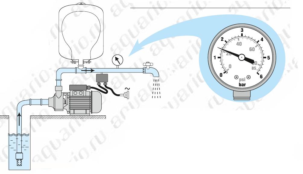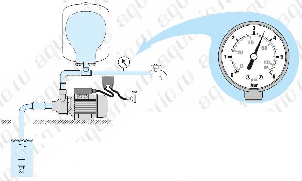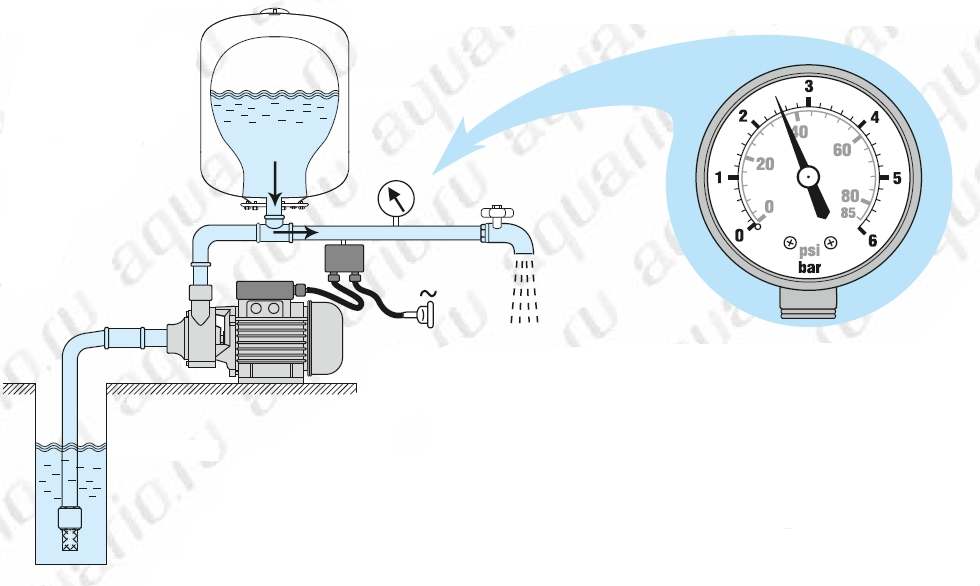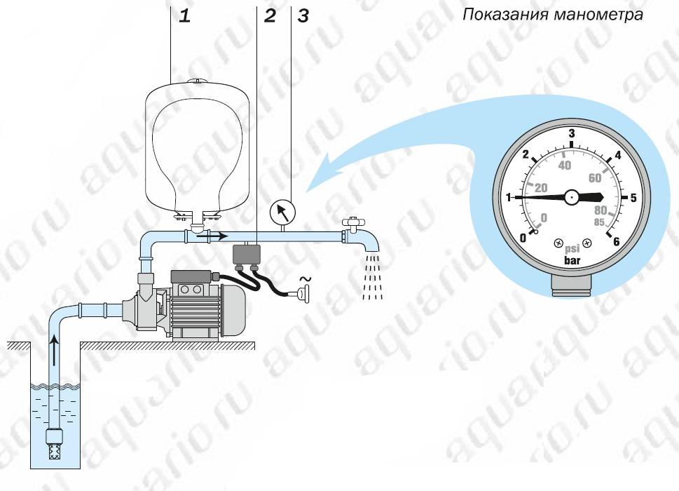 - При понижении давления в системе до 1,5 атмосфер, реле вновь запустит систему наполнения;