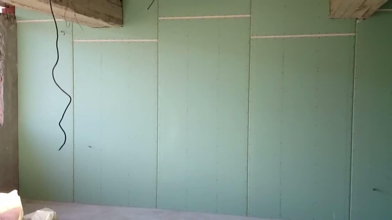 На выравнивание общей площадью около пятидесяти квадратных метров стен гипсокартоном у меня ушло: