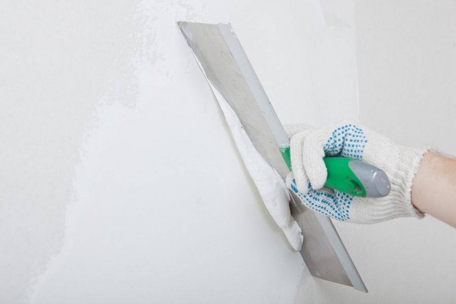 - Стартовый – для выравнивания, устранения заметных выбоин. Тонкие обои не скроют сильные неровности. К тому же пустоты под полотном делают его уязвимым к механическим повреждениям. Оно может порваться даже при легком надавливании на него.