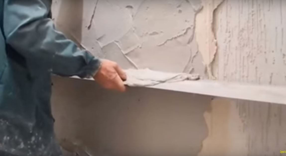 Раствор готовится по инструкции изготовителя, после чего набрасывается на стену. Из инструментов понадобится шпатель или молярный ковш. После того, как состав нанесен на стенку, ваши следующие действия такие: