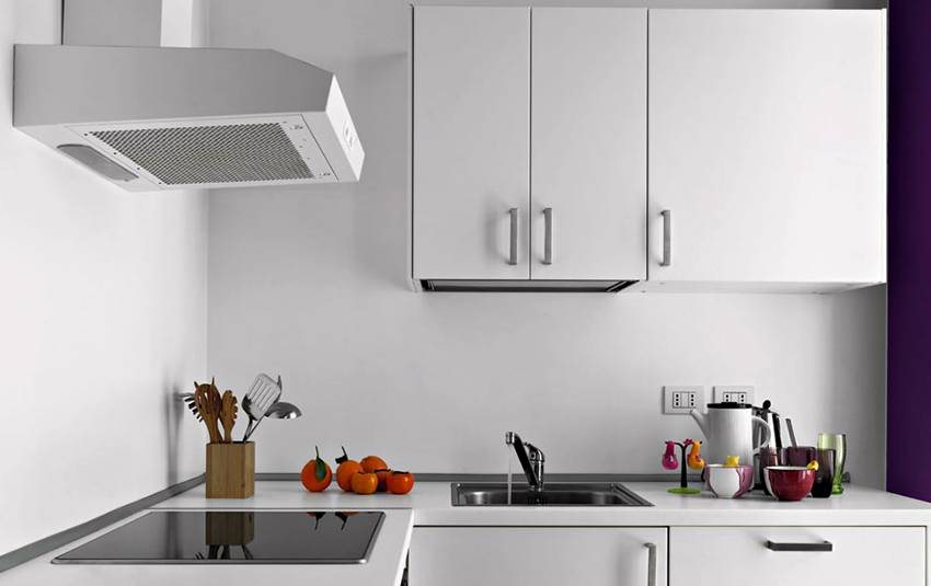 «Поиграть» можно цветом вытяжки – белый, металлический, глянцевый или матовый оттенок. Козырьковая модель вытяжки считается самой оригинальной из представленного ассортимента.