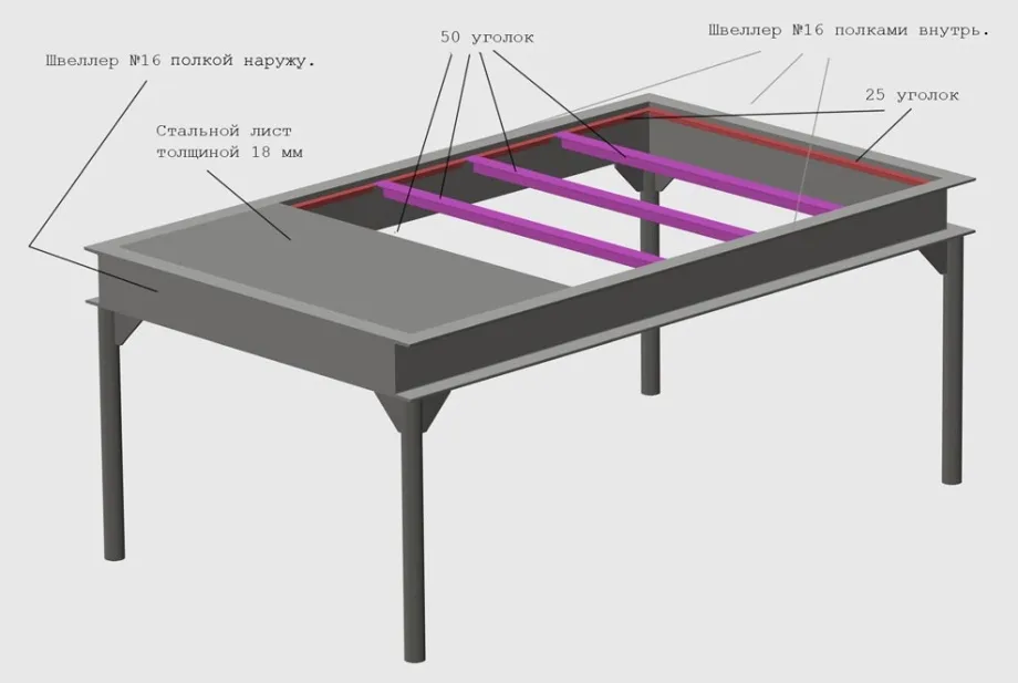 После знакомства с требованиями по изготовлению я подобрал чертеж на самодельный сварочный стол. Не стал сам заморачиваться с расчетами, благо интернет пестрит разработками от конструкторов.