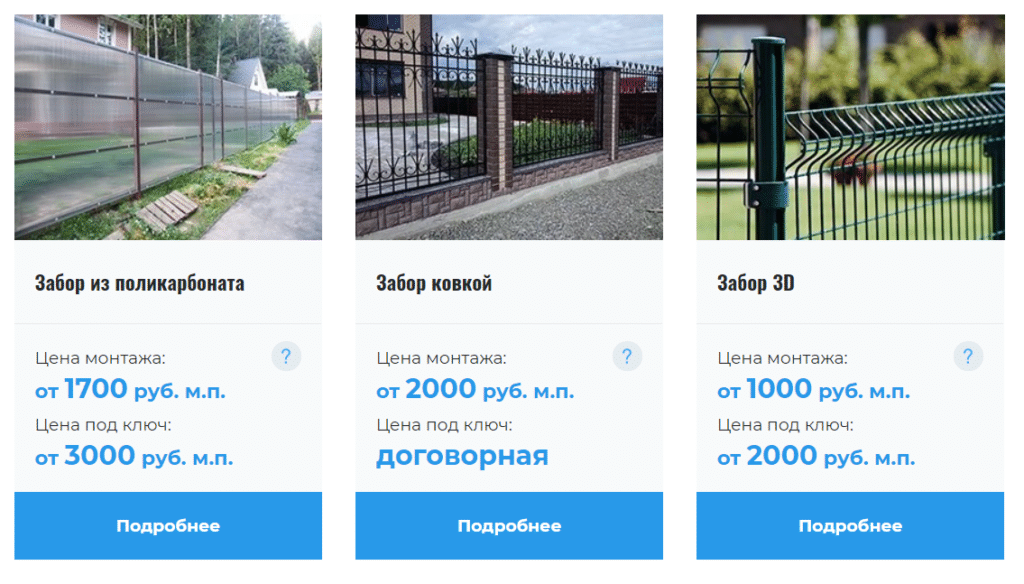 Непосредственно материалы и установка тоже обойдутся в разную сумму. Цена устанавливается за погонный метр забора и составляет в среднем от 1000 до 2000 рублей за метр.