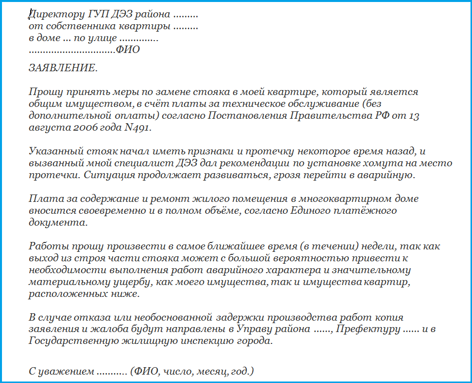 В остальных случаях замена стояка канализации в квартире — это обязанность ЖКХ. Чтобы вызвать мастера, необходимо подать заявку в управляющую организацию. При сильной протечке и серьезных повреждениях обращаться следует в аварийную службу.