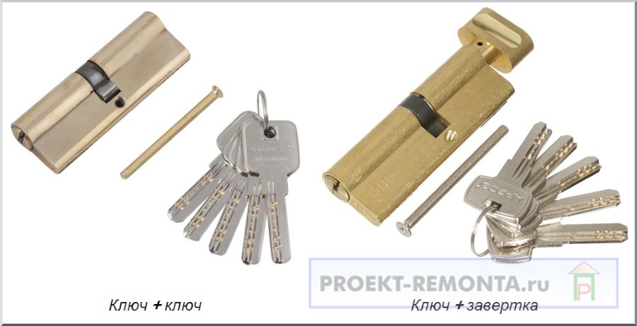 В зависимости от назначения запирающего механизма, можно подобрать для него сердцевину в соответствии со способом закрывания: