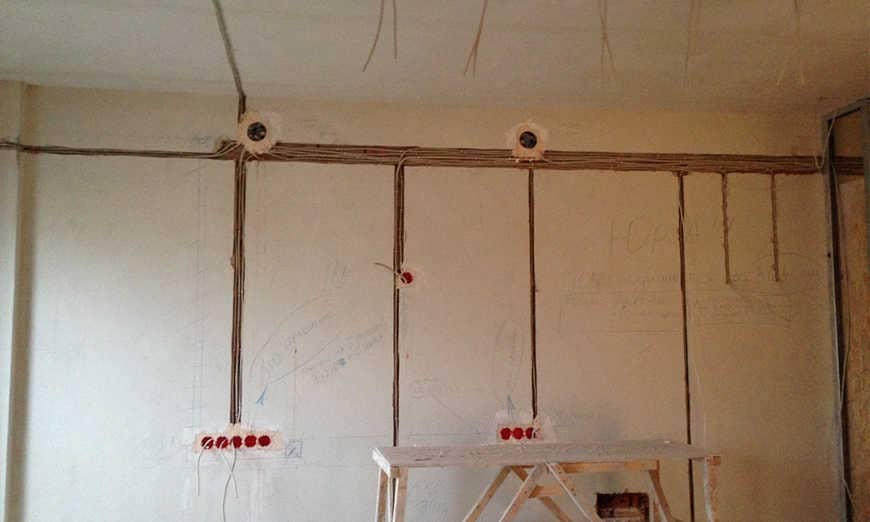 - Далее выполняется подготовка помещения посредством демонтажа старой изжившей себя электропроводки.