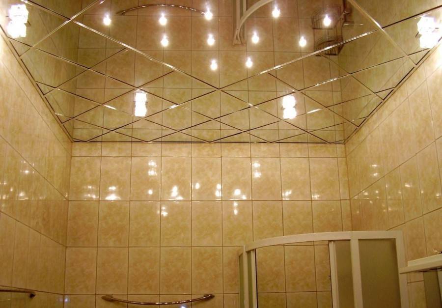 Совет! Одновременно сделать комнату выше и шире поможет облицовка одной из стен зеркальной плиткой, уложенной ромбами или диагонально.