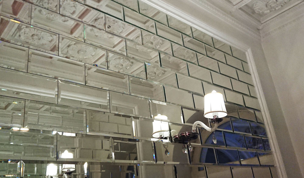 Довольно часто зеркальную плитку можно встретить в интерьерах общественных мест. Она придает интерьеру элементы роскоши и изысканности. Чаще всего это бары, рестораны, кафе и холлы дорогих гостиниц.