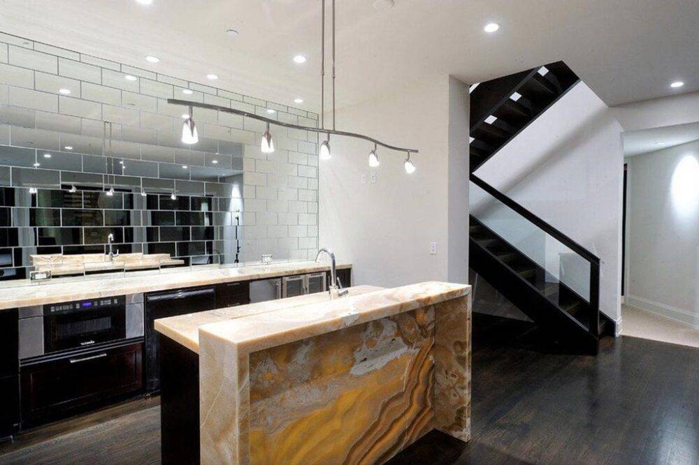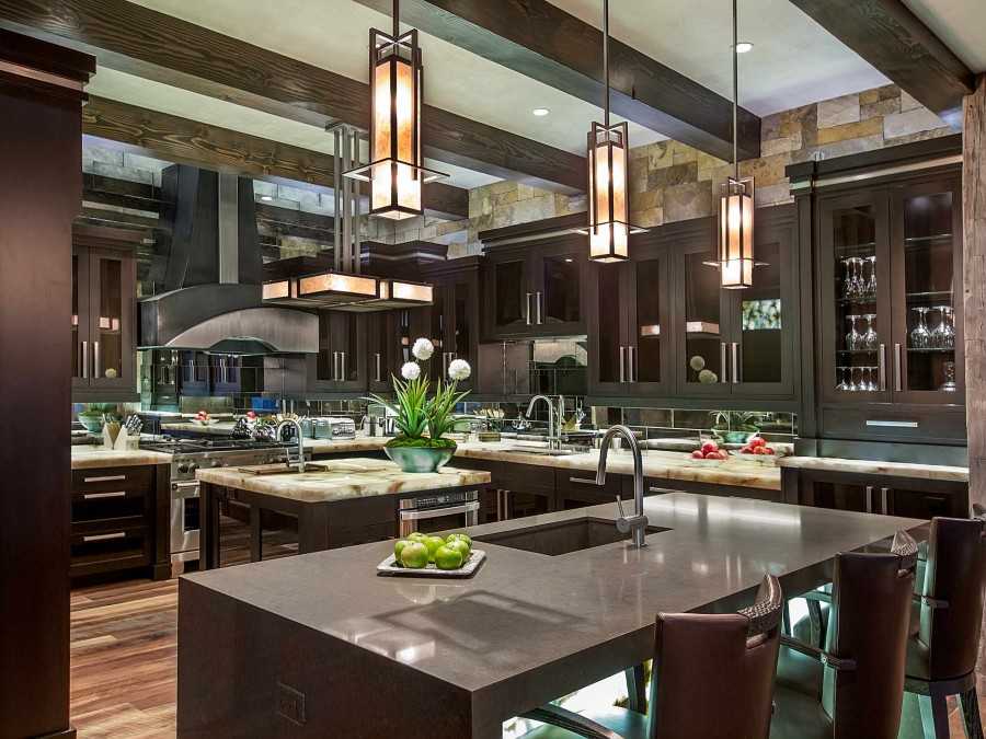 Зеркальная плитка создает оригинальный дизайн интерьера кухни