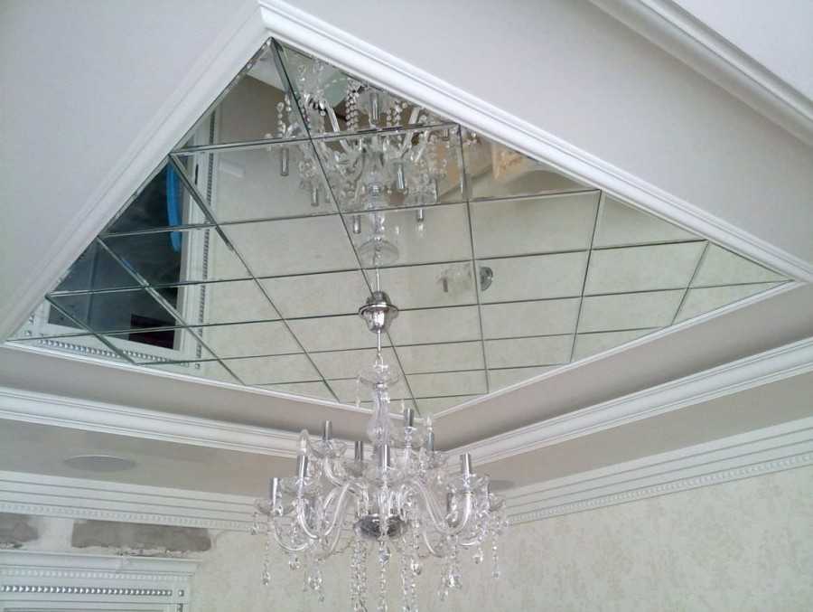 Совет! Для слишком большого помещения декор потолка с помощью зеркальной плитки не рекомендован, поскольку может создать эффект пустоты, холодности.