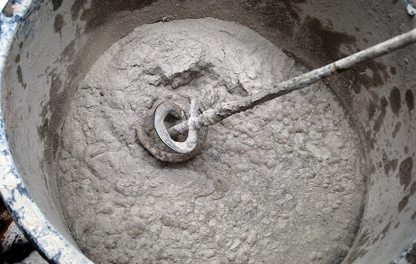 - Раствор следует перелить в более объемную емкость и постепенно добавляют цементно-песчаную смесь.