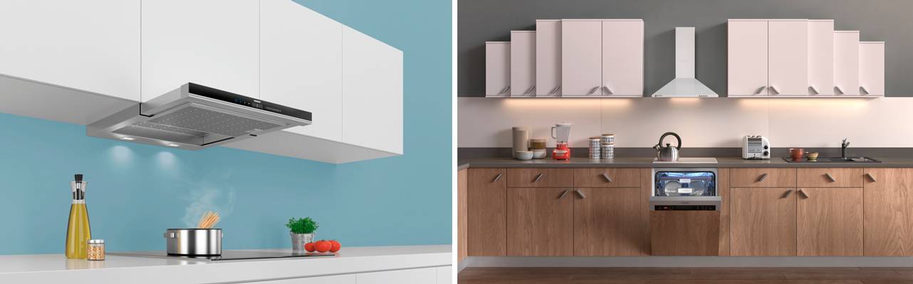 Приборы встраиваемого типа отличаются тихой работой. Устанавливают вытяжку непосредственно над варочной плитой. Работа осуществляется в режиме циркуляции и отвода воздуха.