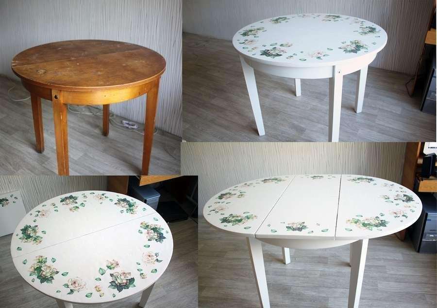 На журнальный стол после реставрации можно нанести рисунок акриловыми красками. При реставрации раздвижного стола нужно убедиться в корректной работе его механизма.
