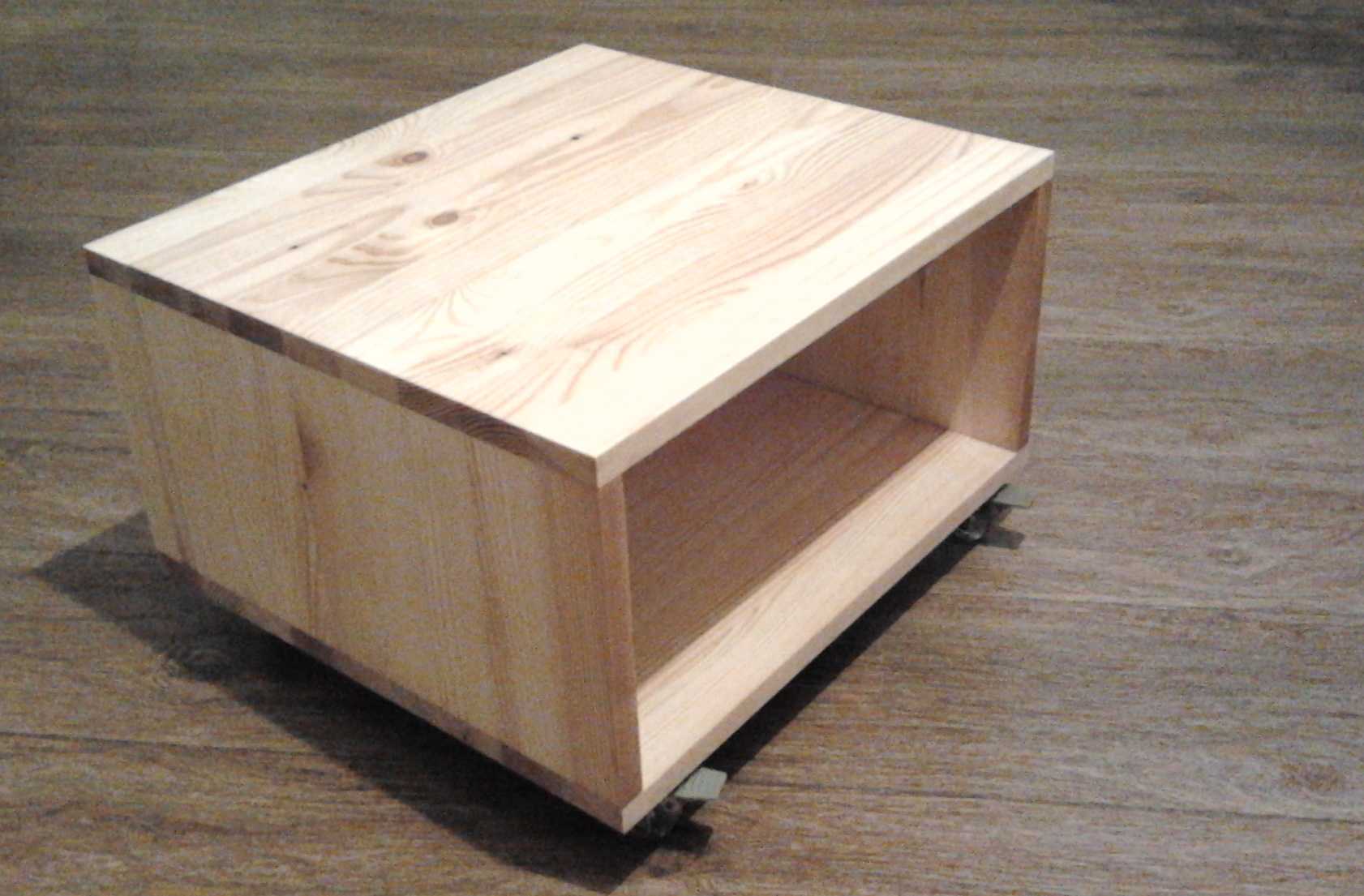 Мобильные модели все проектируются на колесах и с основанием. К столешнице основание может крепиться разными способами. Если продолжить тему – как сделать журнальный стол из остатков материалов, то можно рассмотреть разные варианты на основе уже рассмотренной выше конструкции. Неизменным будет оставаться только дно и, пожалуй, полка. А вот в качестве опор можно рассмотреть то, что есть в остатках ДСП. Например: